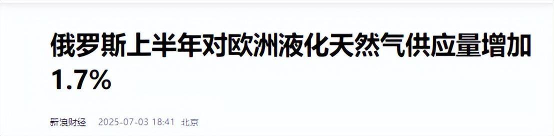 信息来源:新浪财经/2025.07.03/俄罗斯上半年对欧洲液化天然气供应量增加1.7%