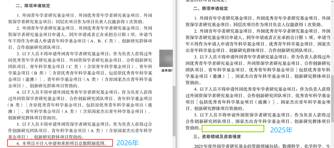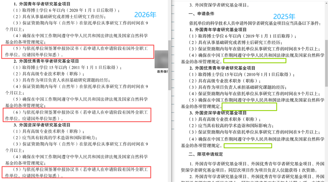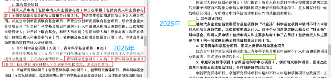 新增对【青年科学基金项目(A类)、青年科学基金项目(B类)】的特殊规定: