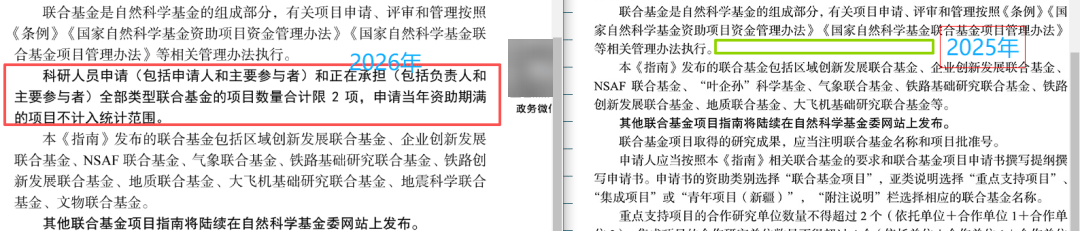 科研人员申请(包括申请人和主要参与者)和正在承担(包括负责人和主要参与者)全部类型联合基金的项目数量合计限2项,申请当年资助期满的项目不计入统计范围。