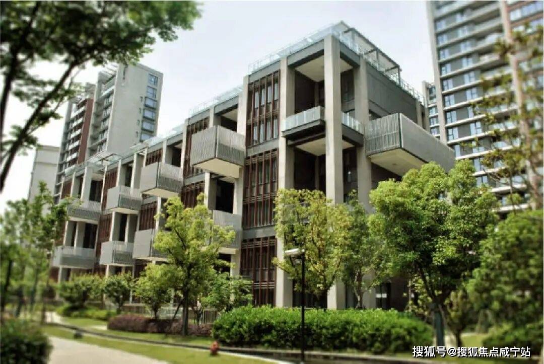 一派绿树掩映的新江湾城,沁风雅苑因为集装箱般的工业风外立面显得独树一帜!
