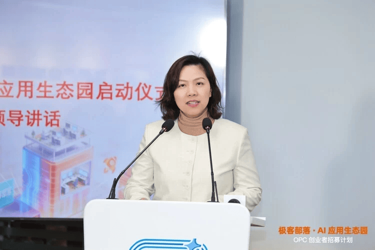 随后,望京街道工委副书记、办事处主任刘丹表示,“望京极客部落· AI 应用生态园”的揭牌和“链主计划”的启动,传递出望京在 AI 新赛道上已做好准备、勇立潮头的强烈信号。街道以“生态共生”替代“单兵作战”,依托 AI 应用生态园这一“创新反应器”,借助 OPC/AI 创新创业平台与“链主计划”,形成“一栋楼就是产业链,上下楼就是上下游”的产业生态;以“服务初心”换取“企业信心”,推出“三个一”服务矩阵,让街道成为企业的“首席服务官”、望京成为创业者的“梦想加油站”;以“科技温度”提升“民生厚度”,探索“科技向善”的实践路径,使创新成果惠及千家万户。希望各界携手同行,以望京沃土涵养科技创新,以生态思维链接未来产业,以极客精神拥抱 AI 变革,共同书写 AI 赋能百业、科技温暖人间的望京新篇章。