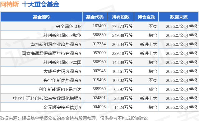 根据2026基金Q1季报公募基金重仓股数据,重仓该股的公募基金共14家,其中持有数量最多的公募基金为兴证全球基金的兴全绿色LOF。兴全绿色LOF目前规模为21.49亿元,最新净值1.599(4月27日),较上一交易日下跌1.54%,近一年上涨41.38%。该公募基金现任基金经理为邹欣。邹欣在任的基金产品包括:兴全创新优势混合A,管理时间为2024年3月26日至今,期间收益率为94.84%。
