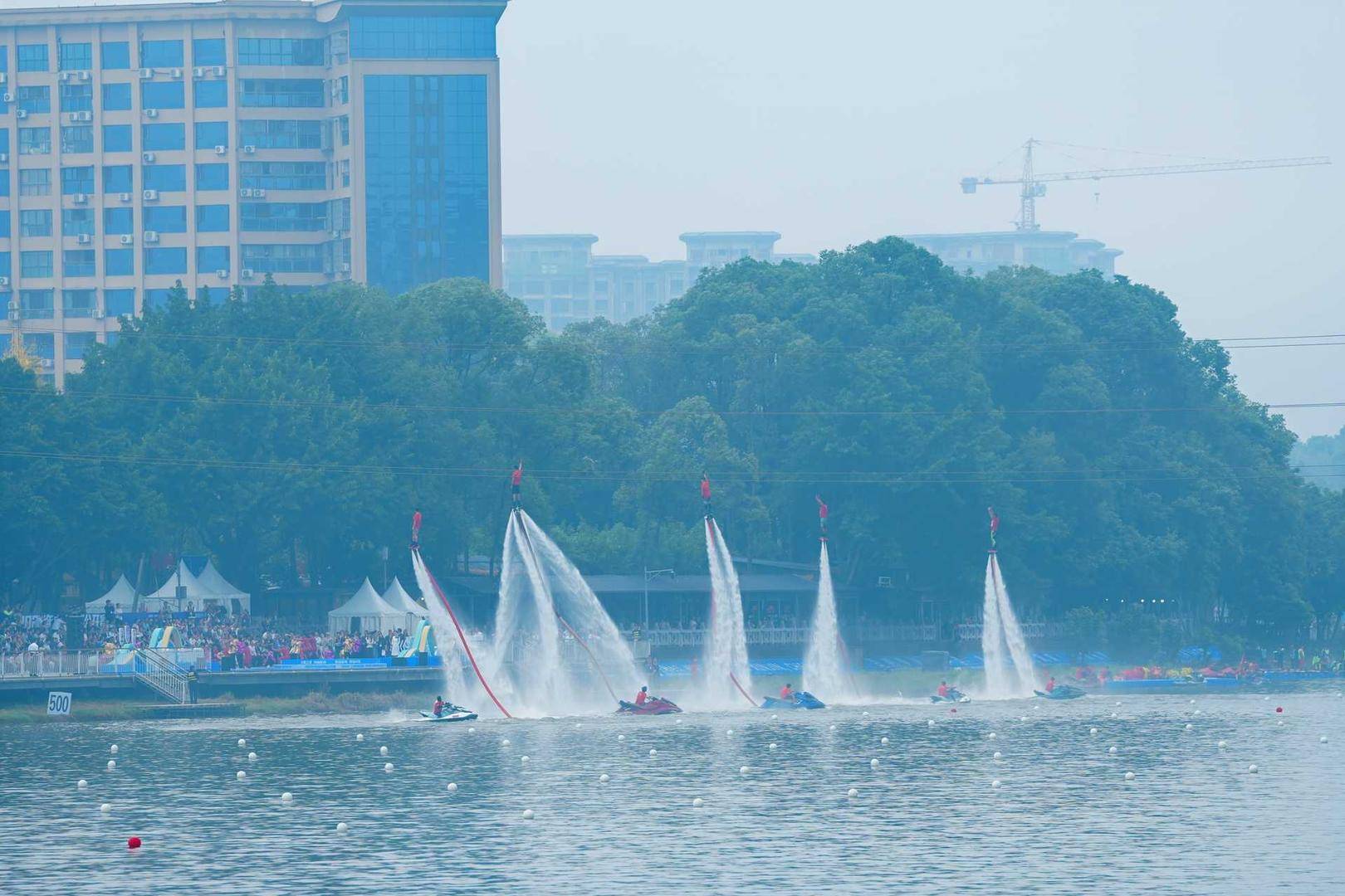 紧接着,数名运动员驾驶动力冲浪板如离弦之箭,在南河之上做出交叉、回旋、腾空等高难度动作,引来两岸观众阵阵惊叹,作为今年世运会刚刚新增的比赛项目,今天再次零距离呈现在观众面前。