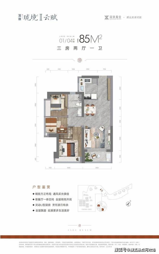 旁边的深铁珑境2期,最小户型85平只能做3房1卫,不加赠送得房率约75%左右。