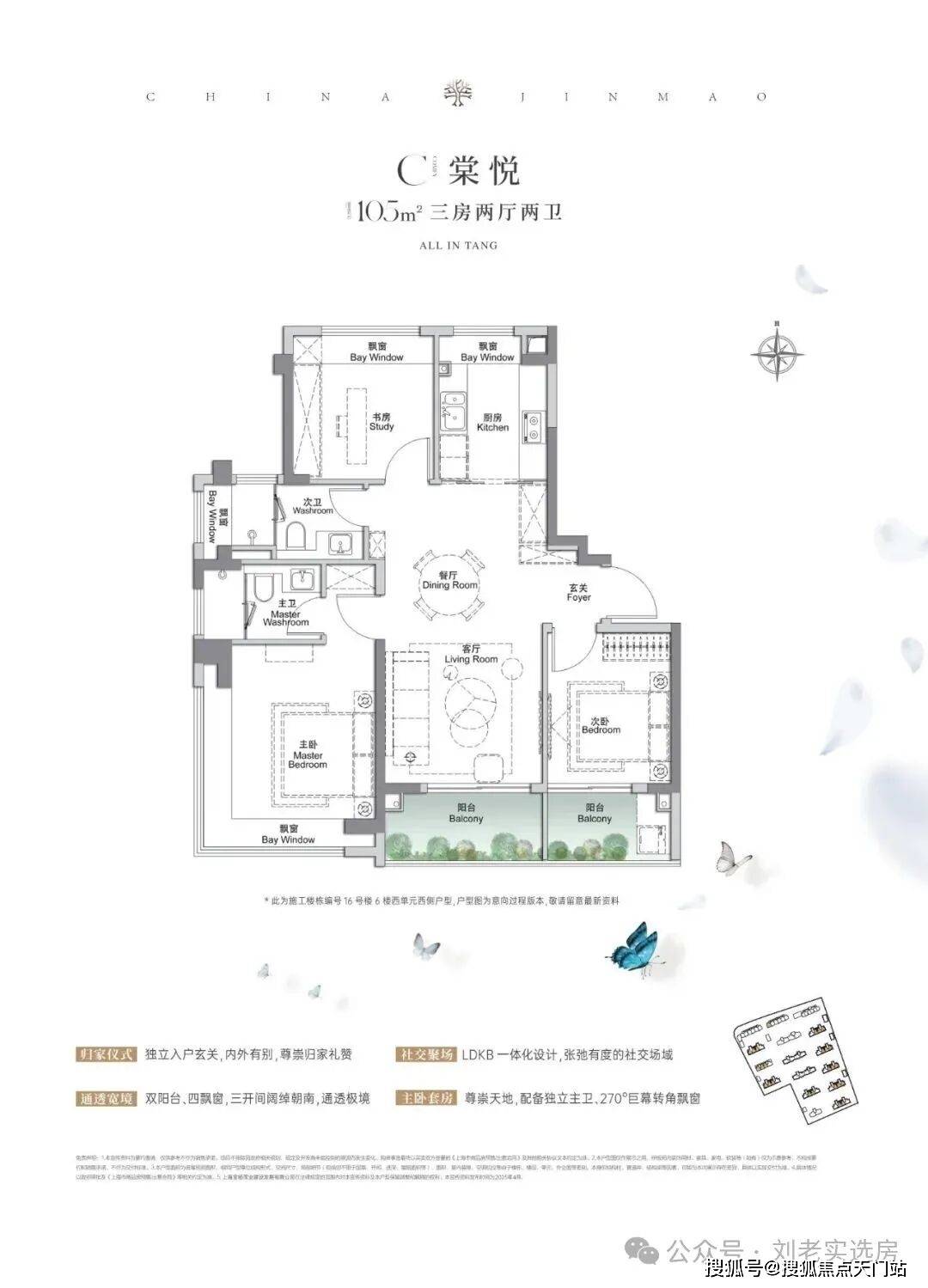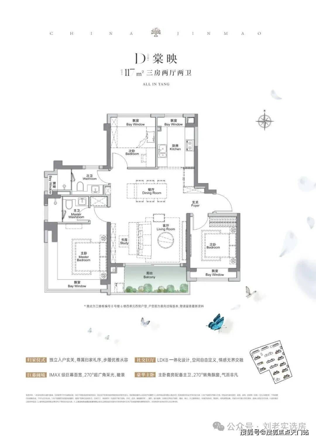 不同的是,建面约105㎡户型竖厅设计,南向配置观景阳台+家政阳台;建面约117㎡户型大横厅设计,南向配置同尺度宽景阳台
