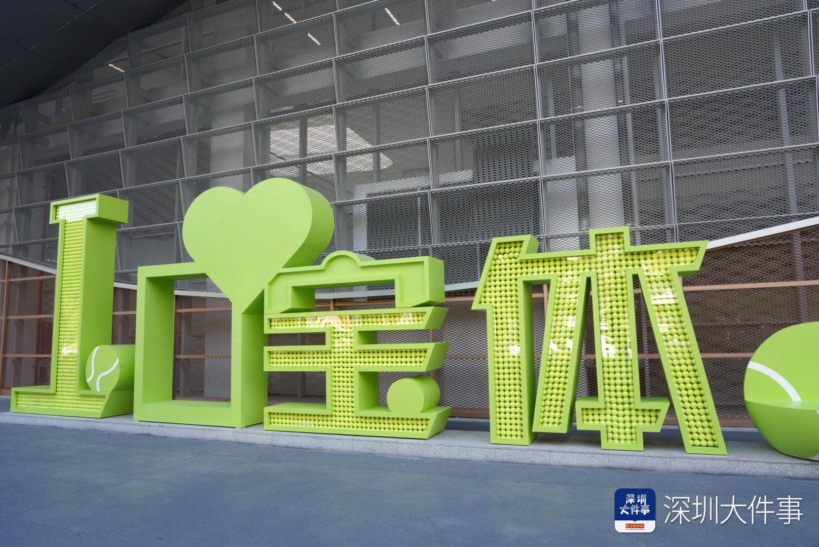 走进场馆入口,一组巨大的绿色装置艺术格外吸睛。“I Love 宝体”的字样中,汉字笔画被精心设计成由无数个网球填充而成,成为市民争相打卡的潮流点位。