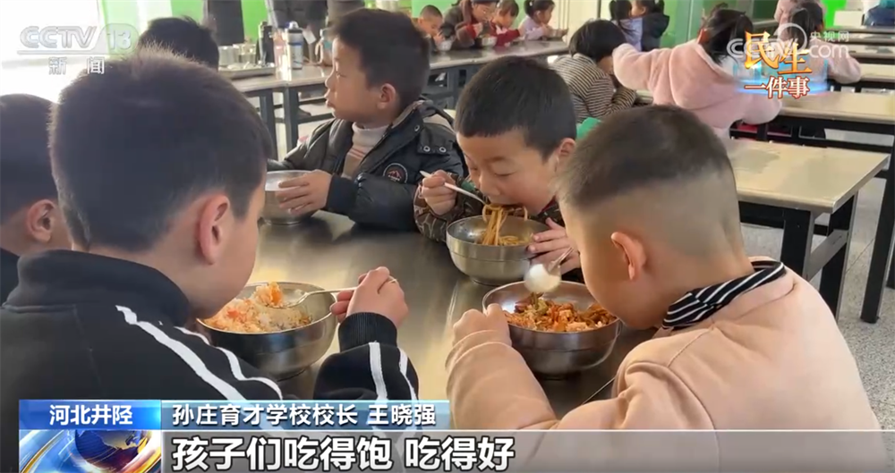 孙庄育才学校校长 王晓强:基本做到了“日进日清”、荤素搭配、营养均衡,孩子们吃得饱、吃得好。