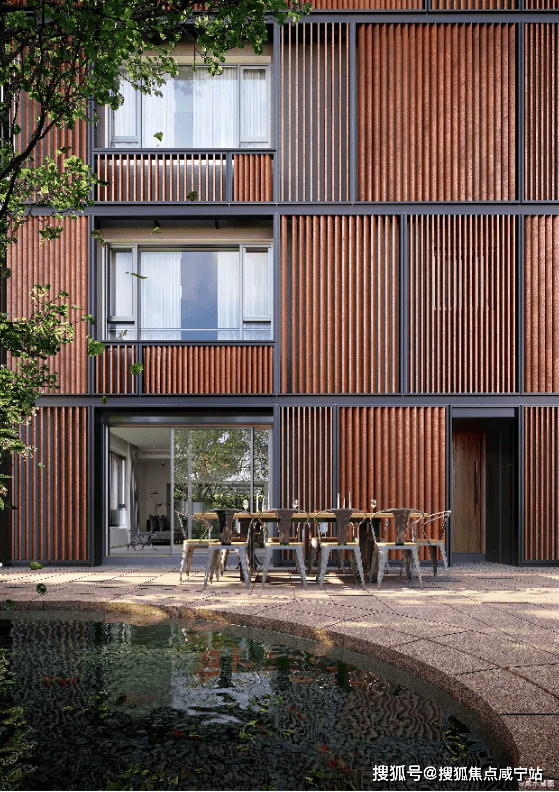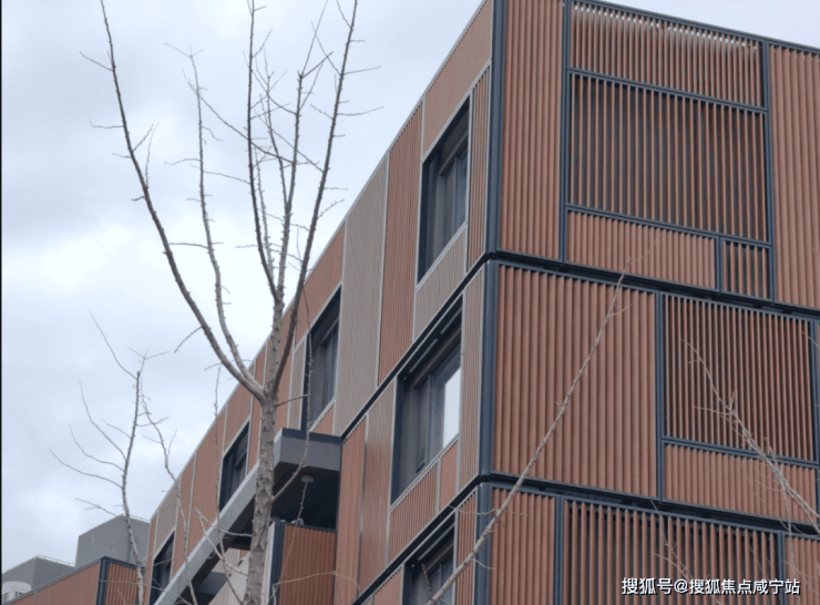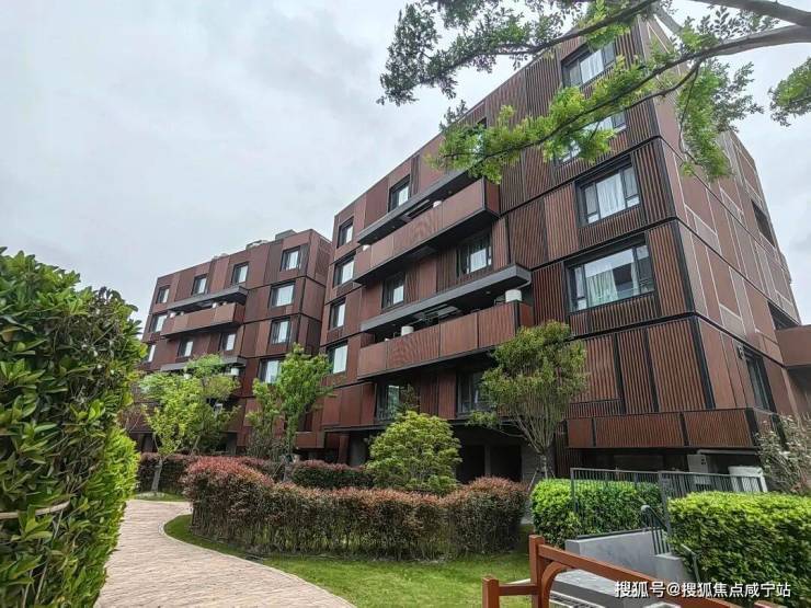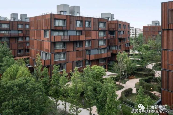 沁风雅苑一共由18栋6层的叠加组成,整体呈倾斜镜像状排列,外立面采用木色调,风格极为独特。