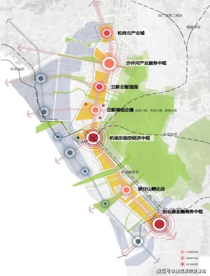 空铁新城机场东综合交通枢纽作为深圳建设国际航空枢纽与国家铁路枢纽的重要组成部分,集航空、高铁、城际、城市轨道、公交等多种交通方式于一体。目依托自身的交通优势。左连前海、右接会展。享受前海的金融利好辐射,又承载着会展的人流导入的功能。成是湾区三角中金融辐射、会展人流承载的核心地带