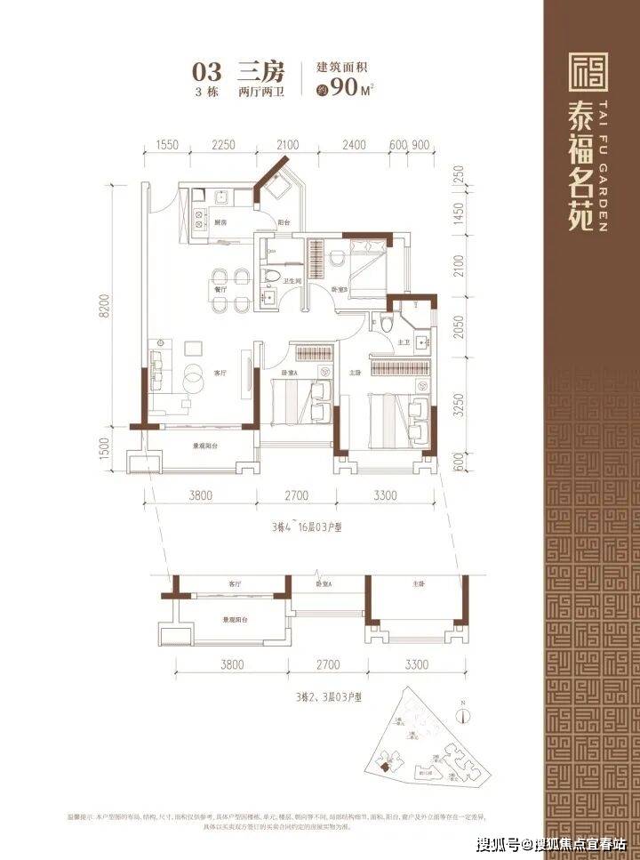 90-102㎡的3房2厅2卫户型。这几个户型都是在主人房多设计一个卫生间,私密性更强,也让家人间的生活更加方便。