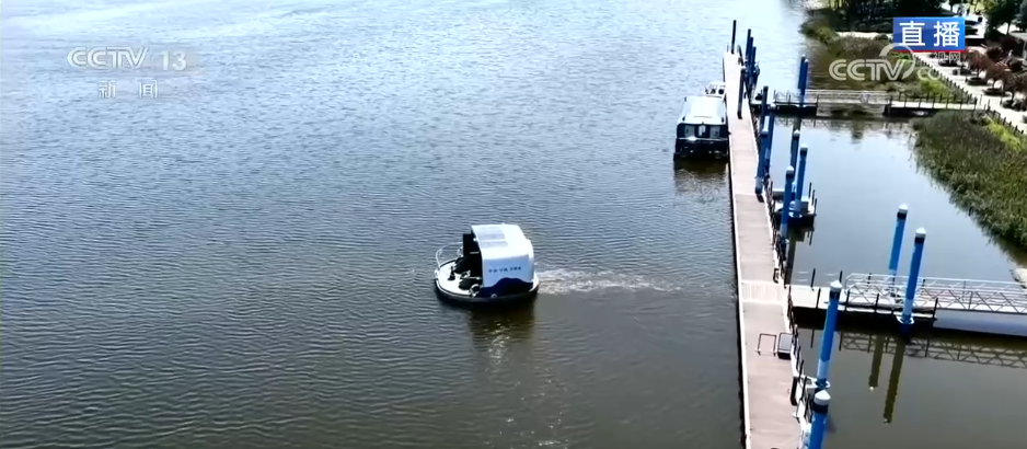 如果你是带着三五好友,你还能选择这艘更迷你的小船,它的外形就像一个太空舱一样,科技感十足。这艘船是纯电动的,顶部还有太阳能板,可以一边航行一边给自己补电。你还可以自己上手来驾驶这艘船,遥控器操作也很简单,左边控制前后,右边控制转向。刚刚坐了这么一段,最大的感受就是——对眼睛很友好,可以尽情看湖光春色;对鼻子很友好,没有传统燃油船的气味;对耳朵也友好,整个过程非常安静舒适。